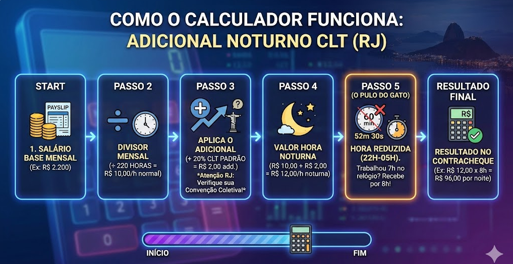 Adicional Noturno CLT Rio de Janeiro – Calculadora Online Grátis 2025