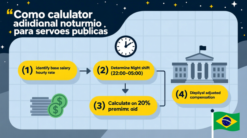 Esse valor se soma ao vencimento mensal do servidor. Antes de calcular o seu salário noturno, use nossa calculadora de adicional noturno para obter o valor exato conforme suas horas trabalhadas.