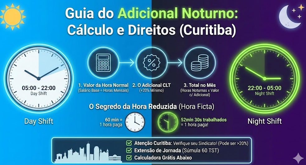 Este guia completo foi criado para trabalhadores, profissionais de RH e pequenos empresários em Curitiba que precisam de respostas claras. Aqui, vamos desvendar tudo sobre o adicional noturno, respondendo a perguntas como: